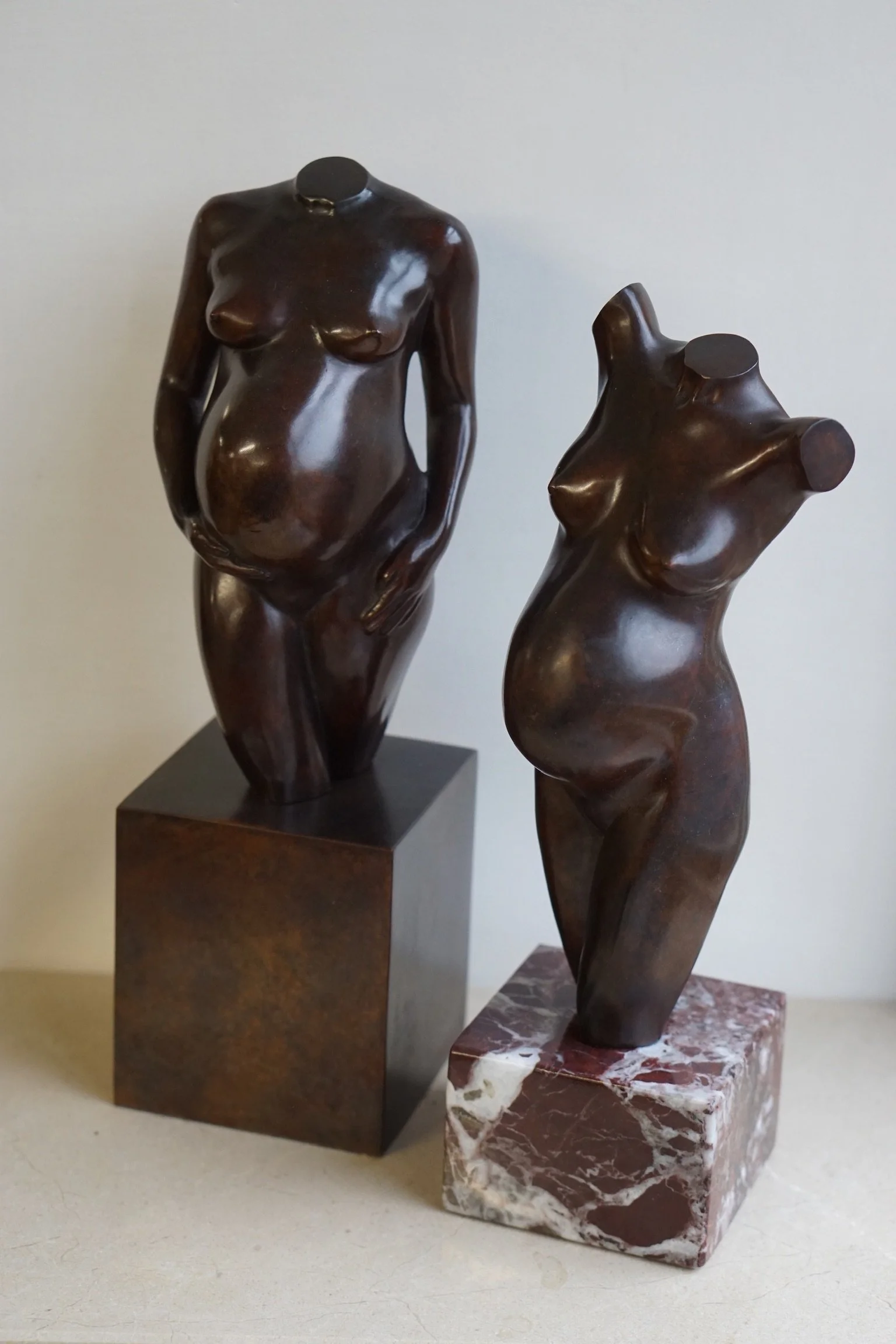Cast bronze with a dark mottled-brown finish achieved through chemical ageing. The deep colour catches the light beautifully, creating interest around each curve and crevice.